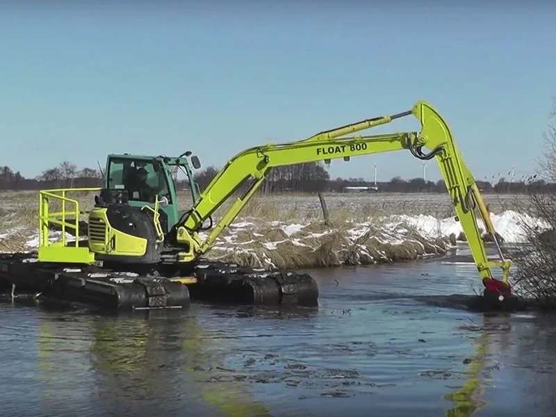 Big Float – это модель длиннорукого экскаватора амфибии, разработанного для выполнения работ в заболоченных местах (очистка и выторфовка болот), водоемах, на глиняной и ледяной поверхностях и в других местах, а также допускается к работе в условиях предельной нормы загрязнения воздуха.