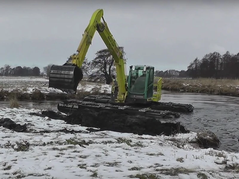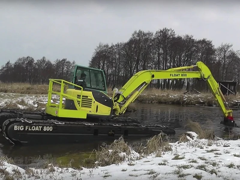 Big Float – это модель длиннорукого экскаватора амфибии, разработанного для выполнения работ в заболоченных местах (очистка и выторфовка болот), водоемах, на глиняной и ледяной поверхностях и в других местах, а также допускается к работе в условиях предельной нормы загрязнения воздуха.