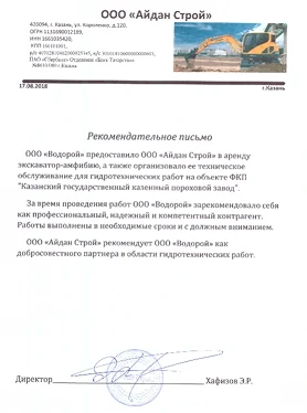 За предоставление в аренду и техническое обслуживание экскаватора-амфибии