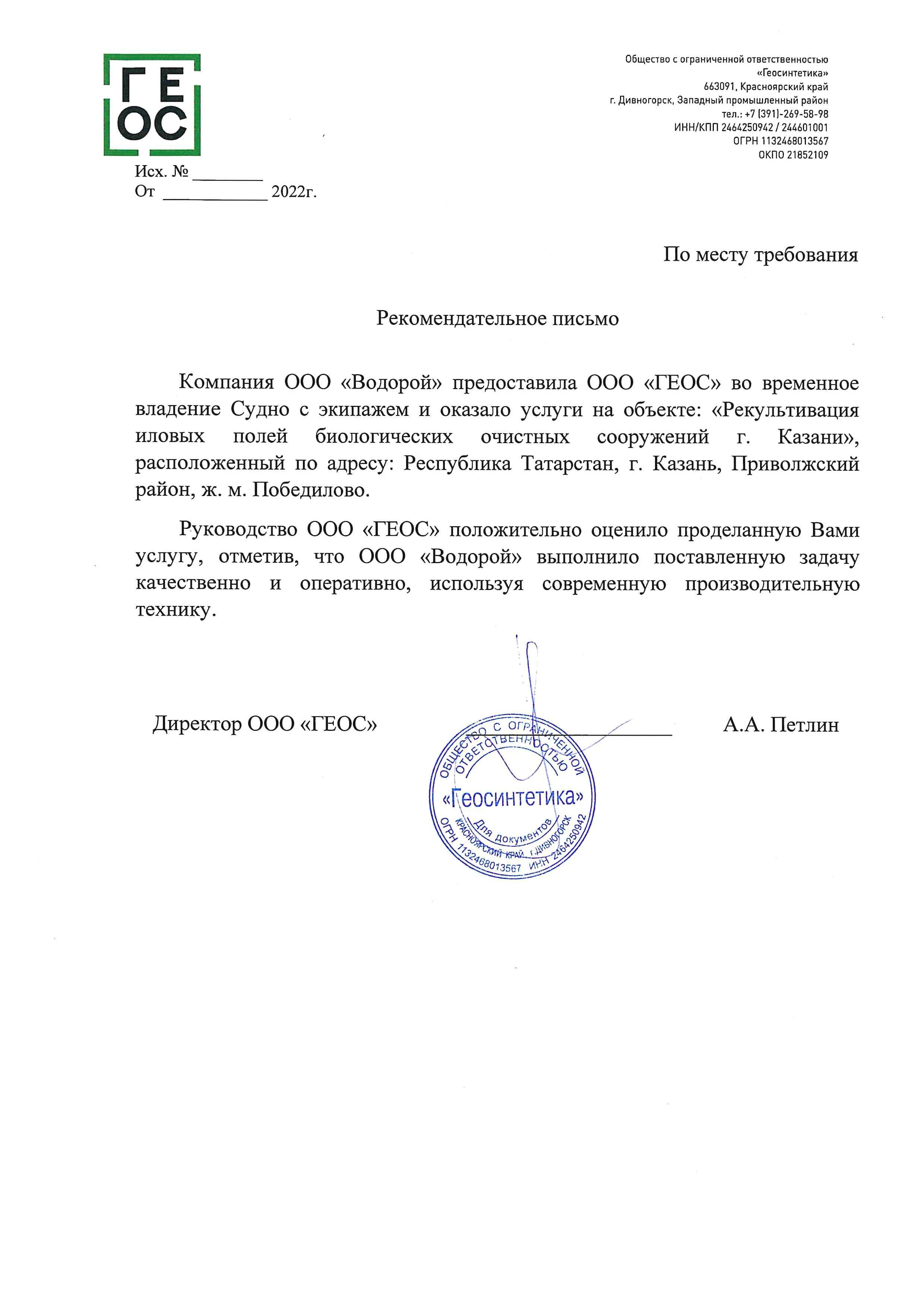 За выполненную работу по строительству комплекса гидротехнический сооружений