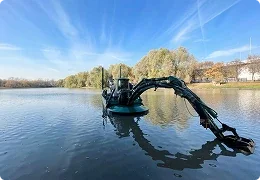 - Очистка декоративных прудов и других водоемов (озер, каналов, лодочных доков и т. д.) от ила, донных отложений, грунтов с водной растительностью