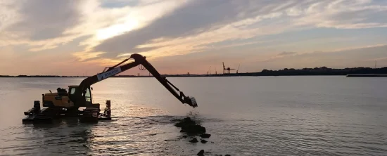 Подводные траншеи на вязких грунтах или при глубине более одного метра разрабатываются плавающим экскаватором Waterking, экскаватором Big Float либо земснарядом, которые комплектуются специальными насадками. Это может быть землесос либо экскаваторный ковш. Если глубина небольшая или нужна траншея на суше, то возможно проведение работы с помощью гусеничного экскаватора Doosan DX 300. Выбранный грунт может складироваться в отвал вдоль подводной траншеи, перемещаться в карту намыва или место временного складирования по пульпопроводу, либо с погрузкой на баржи, аренду которых мы предлагаем. Выбор технических средств, с помощью которых будет осуществляться разработка подводных траншей, зависит от свойств почвы и ее объемов, скорости течения, глубины водоема, а также удобства условий для удаления грунта из траншей. Также для более точной и быстрой работы рекомендуем воспользоваться экскаватором Volvo EC 220 DLR (EIK), который оборудован новой системой позиционирования TOPCON 3Dxi.