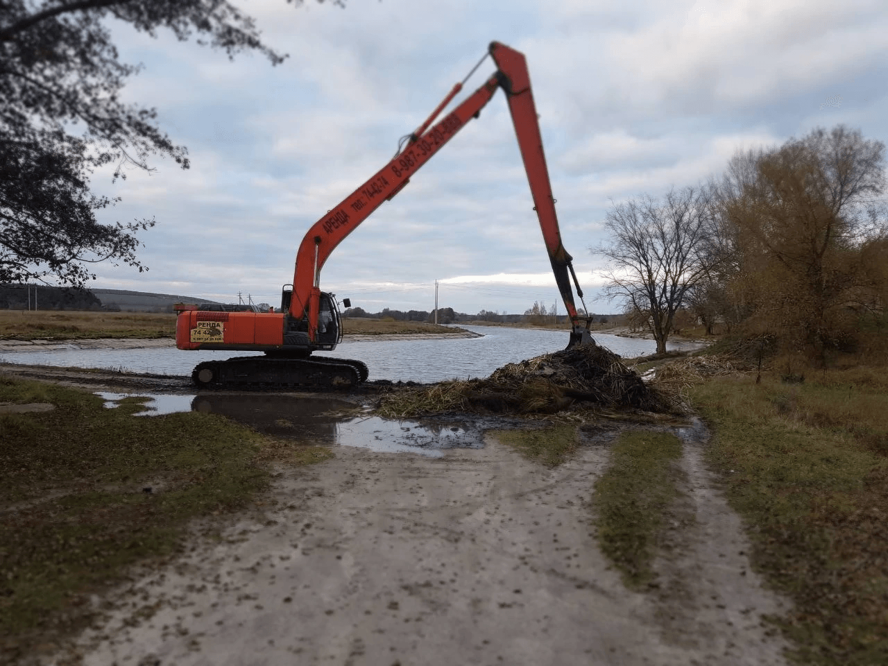 Очистка береговой линии водоподводящего канала от водорослей, камыша. Участок производства работ от реки Оскол до насосной станции 1-го подъема.