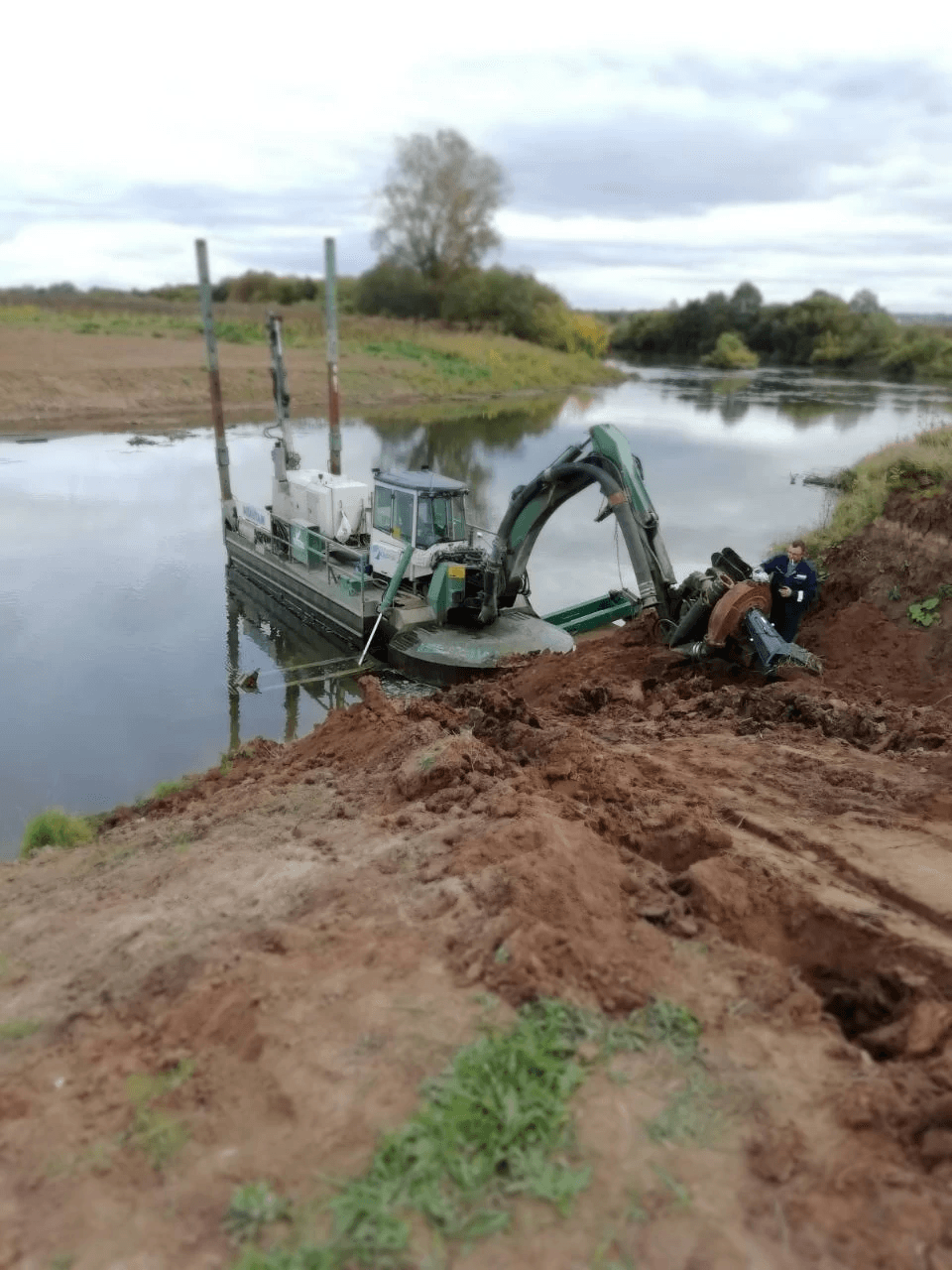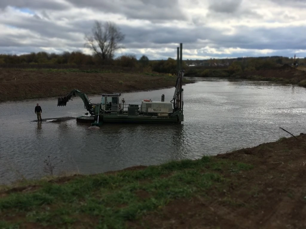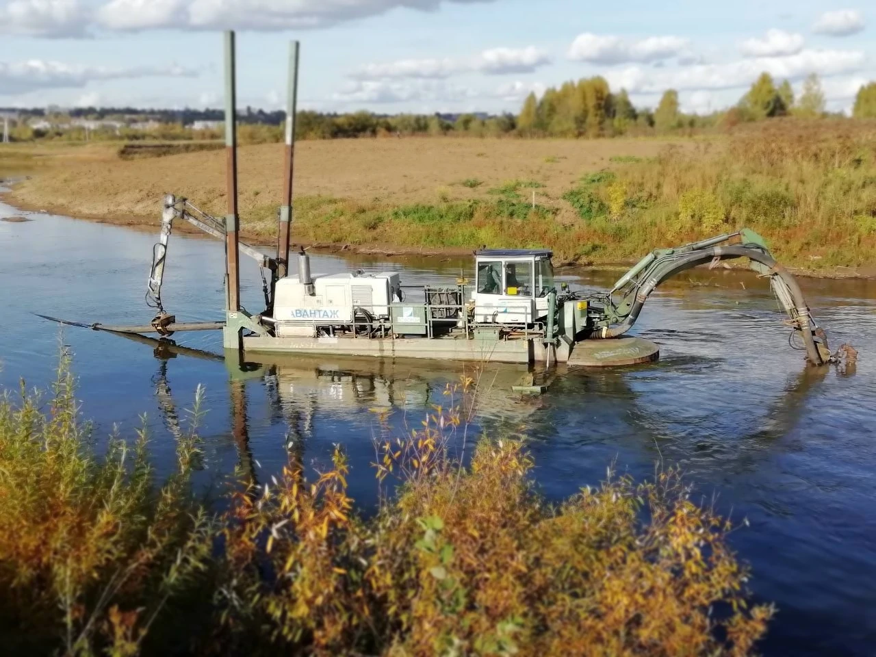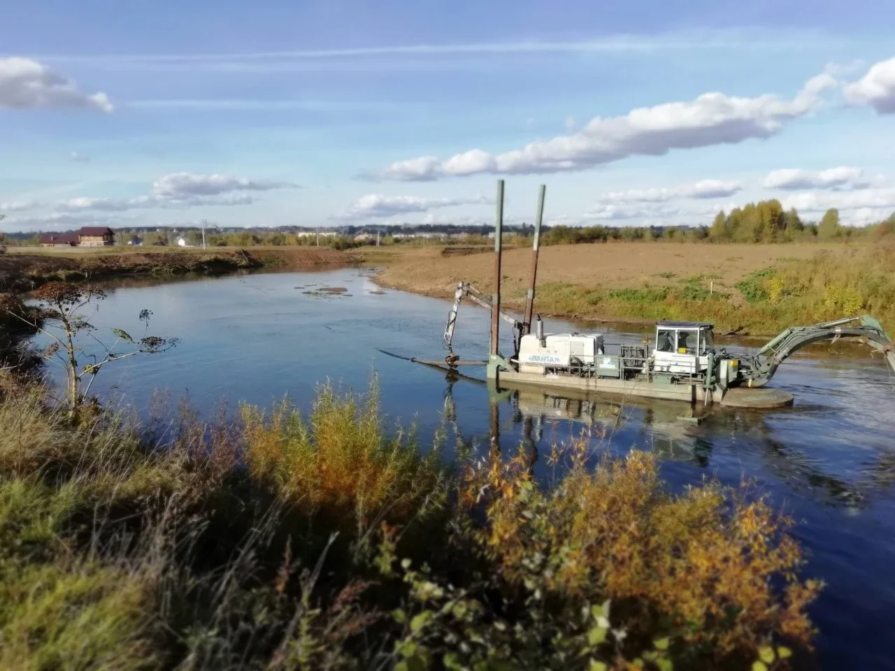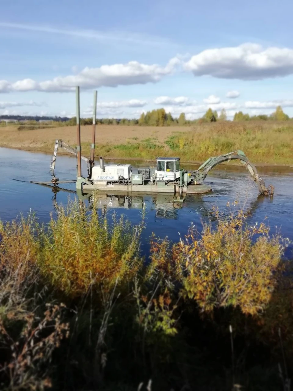Расчистка и дноуглубление реки Иньва в Кудымкарском районе, Пермского края. Работы выполнены земснарядом Watermaster Classic.