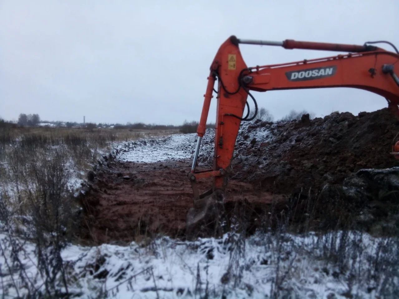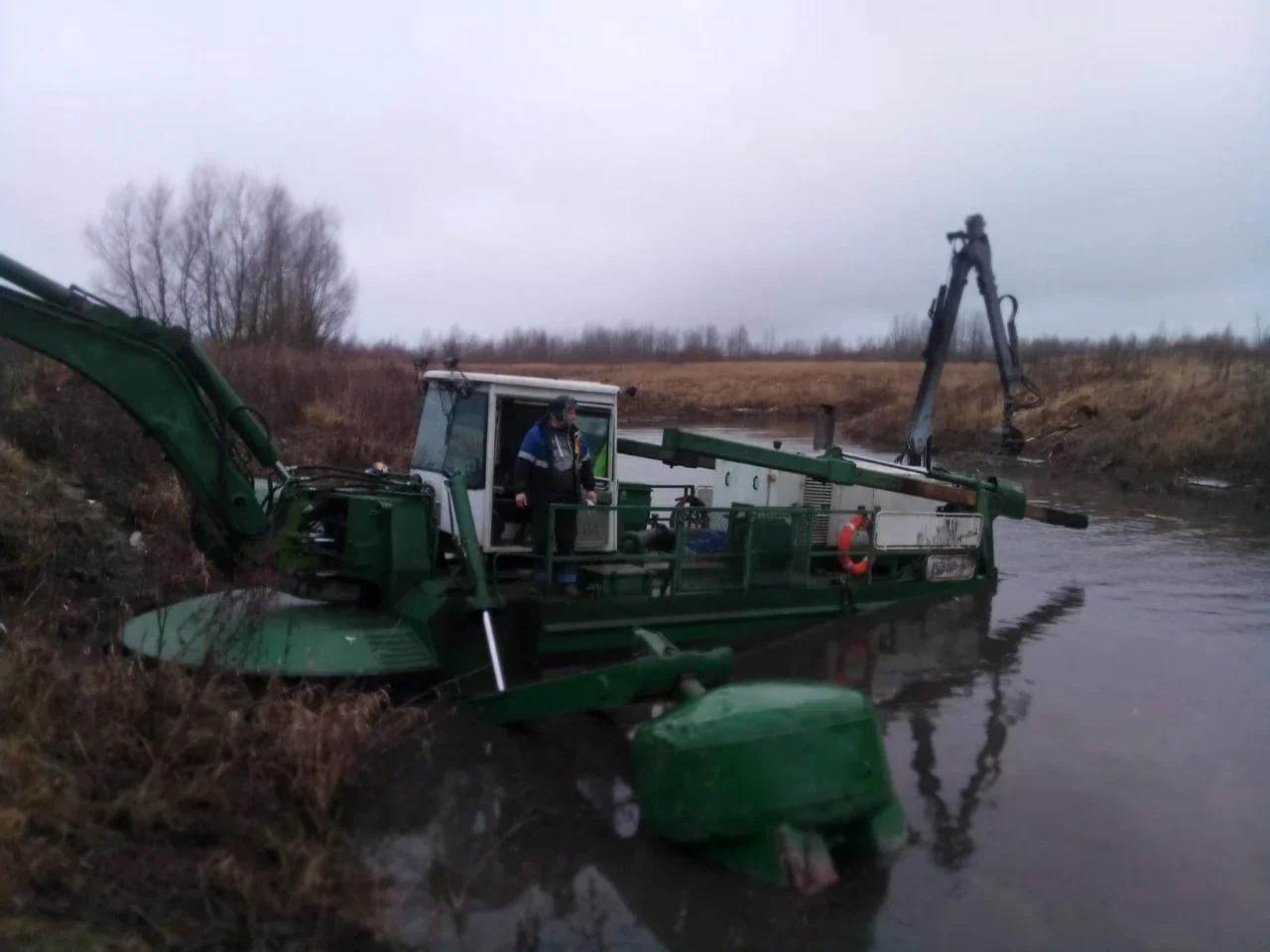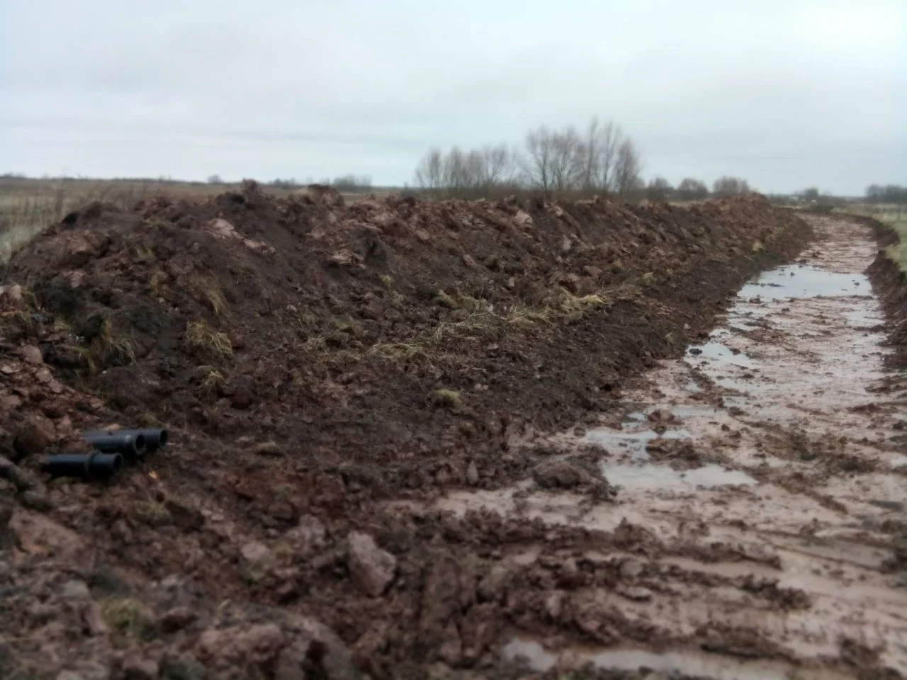 Перед началом очистки канала условно-чистых вод выполнено устройство карты намыва из местного грунта с помощью бульдозера и экскаватора.