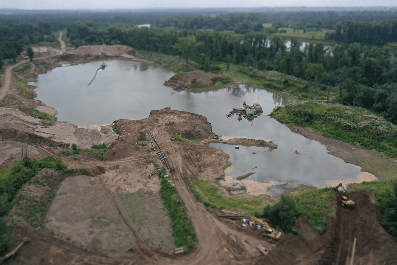 Добыча ПГС на подводном карьере в Уфимском районе Республики Башкортостан.