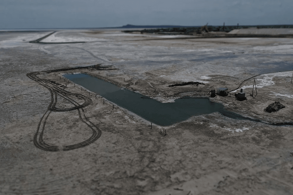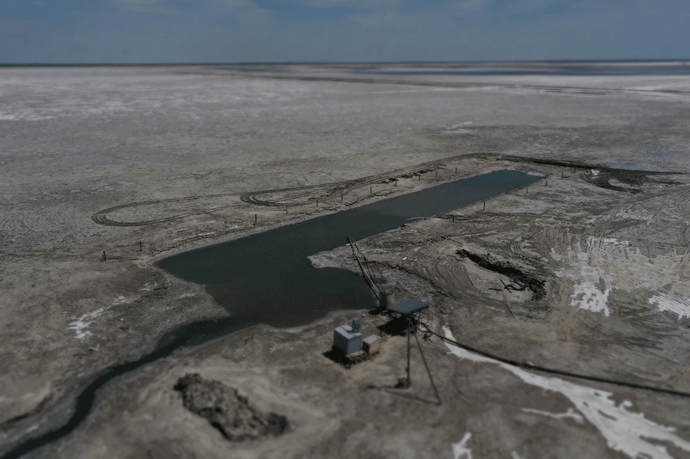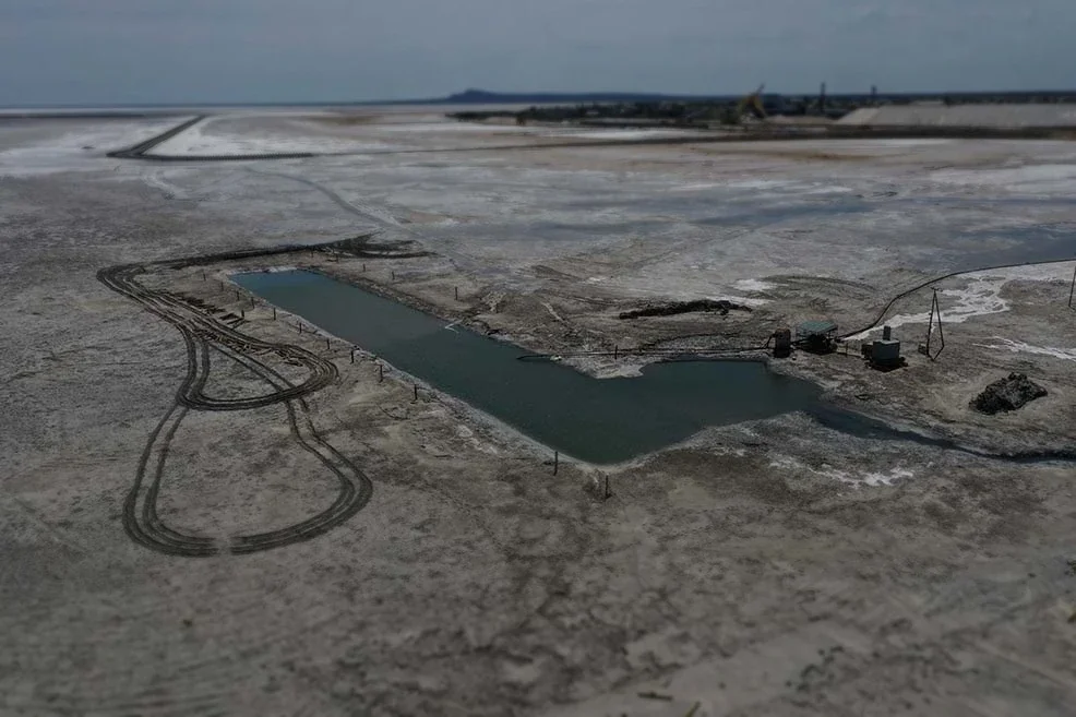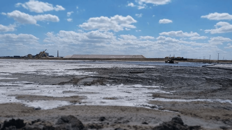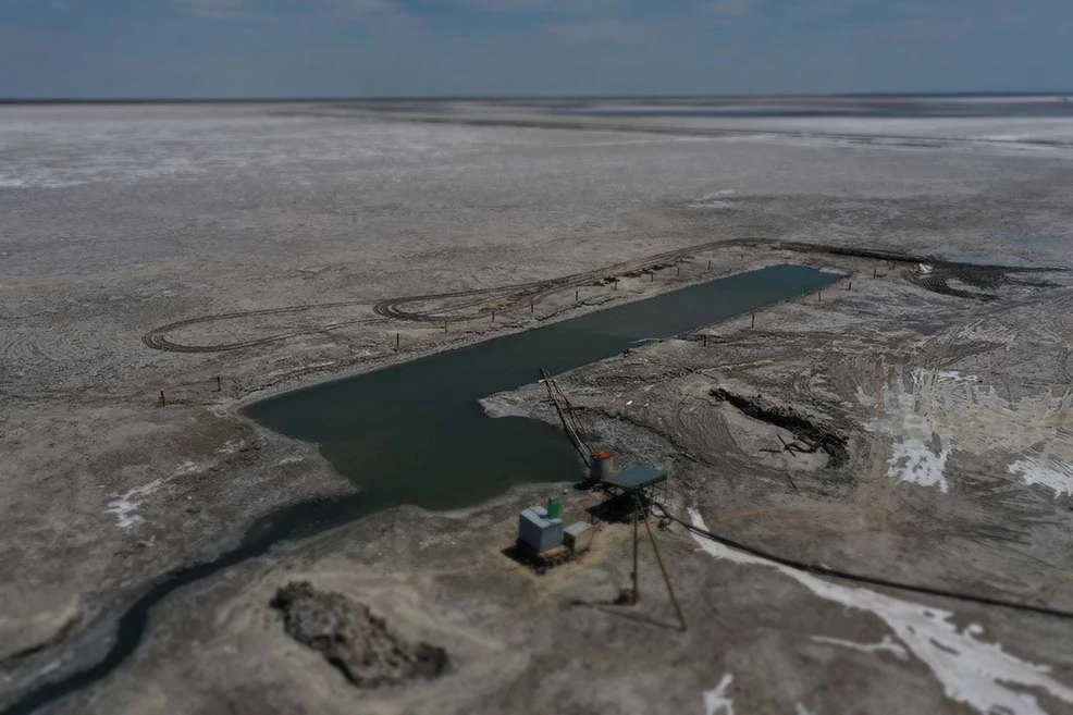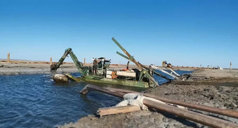 Расчистка котлована насосной станции в озере Баскунчак на территории компании Руссоль.