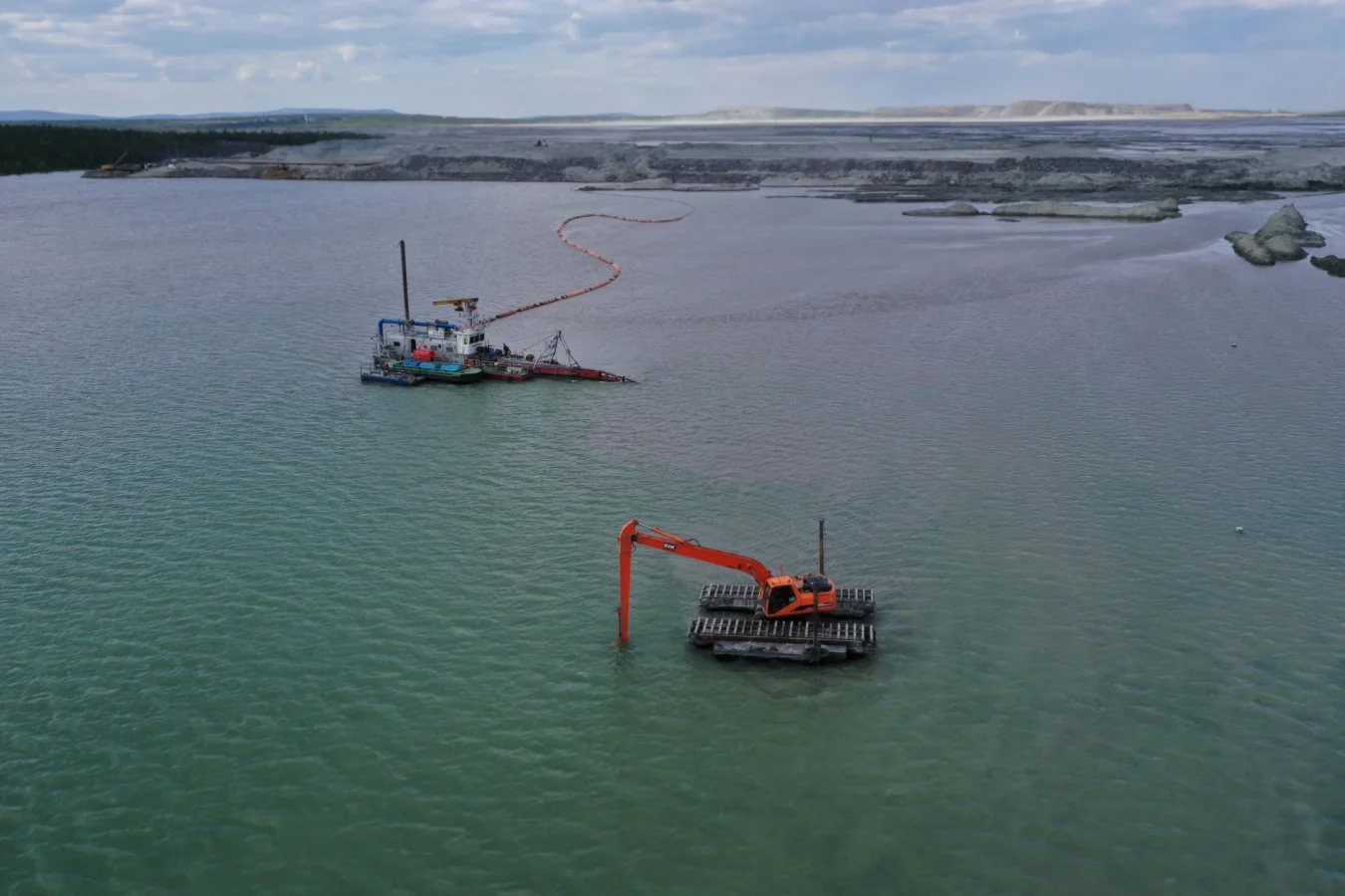 Очистка пруда технической воды от мелкодисперсных песков