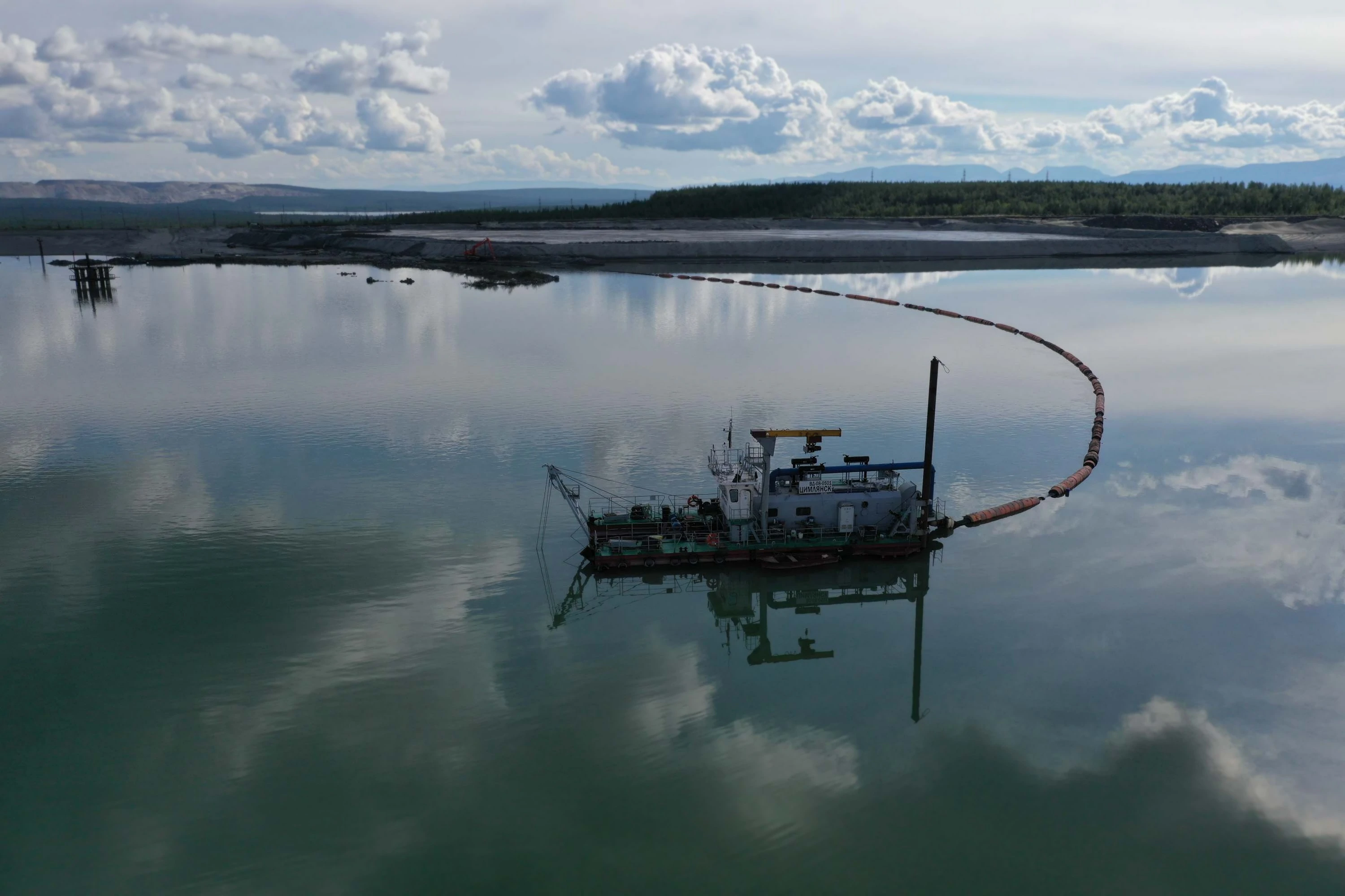 Очистка прудка-отстойника от заиления на территории АО "Олкон" города Оленегорска