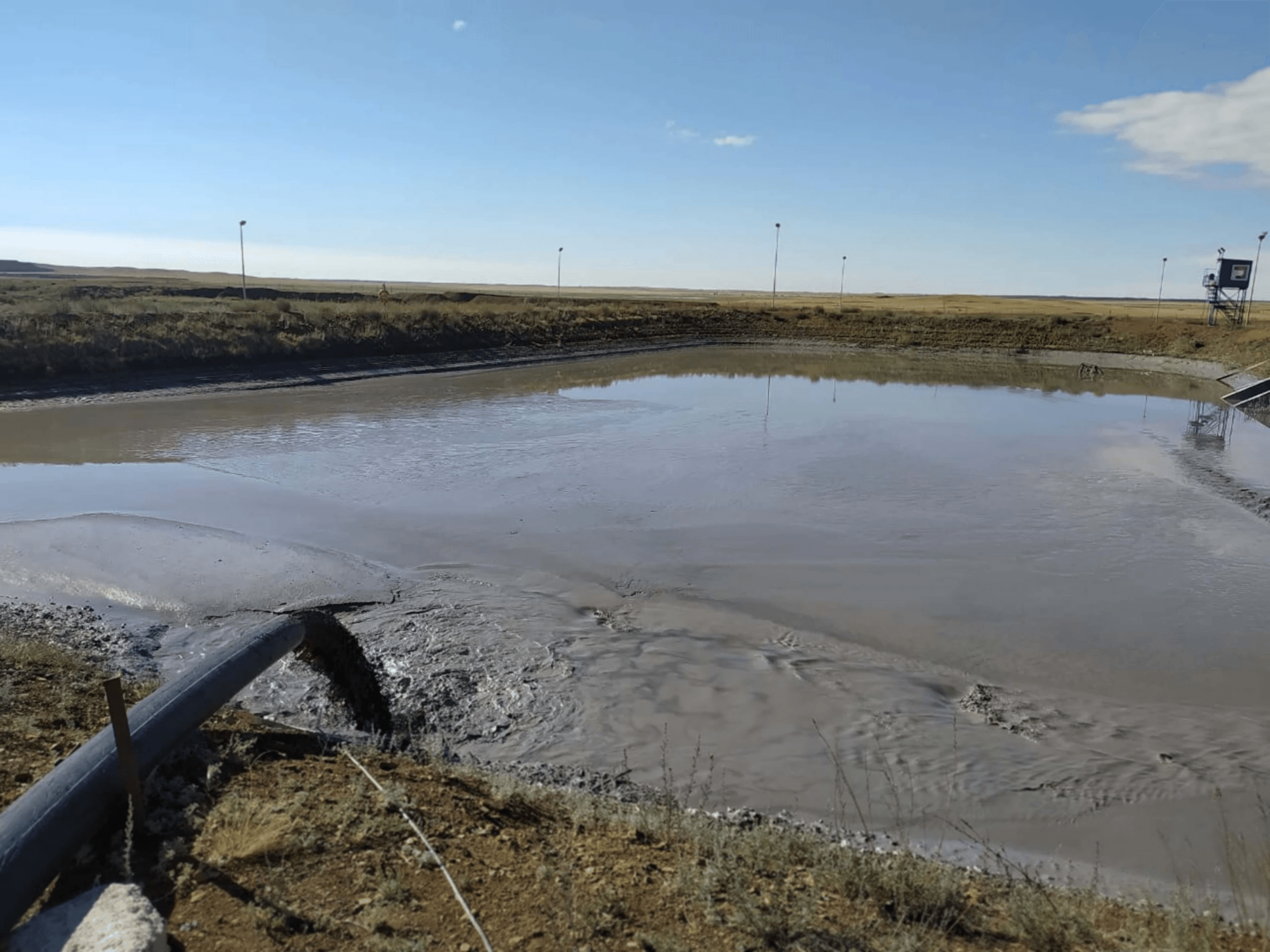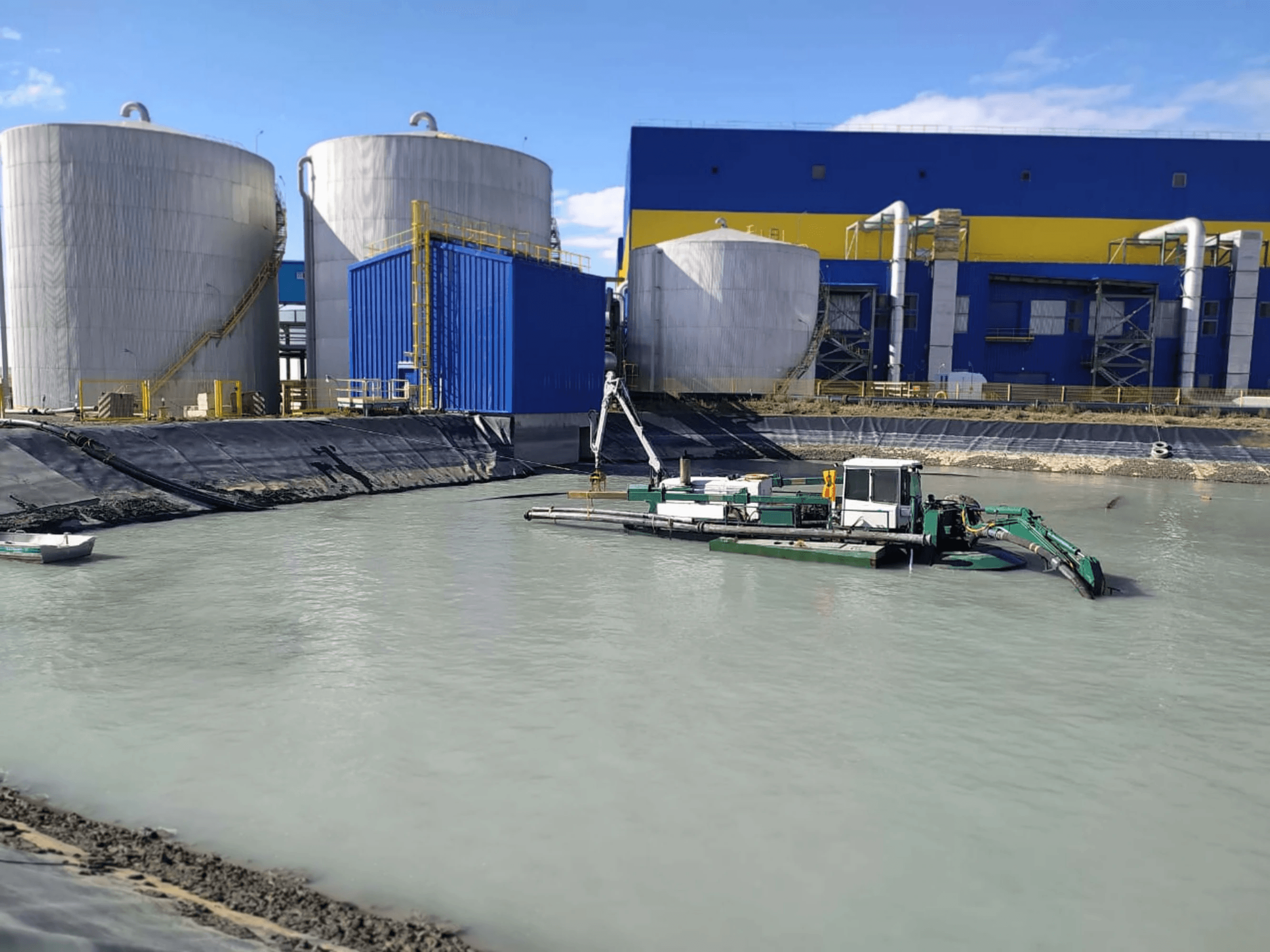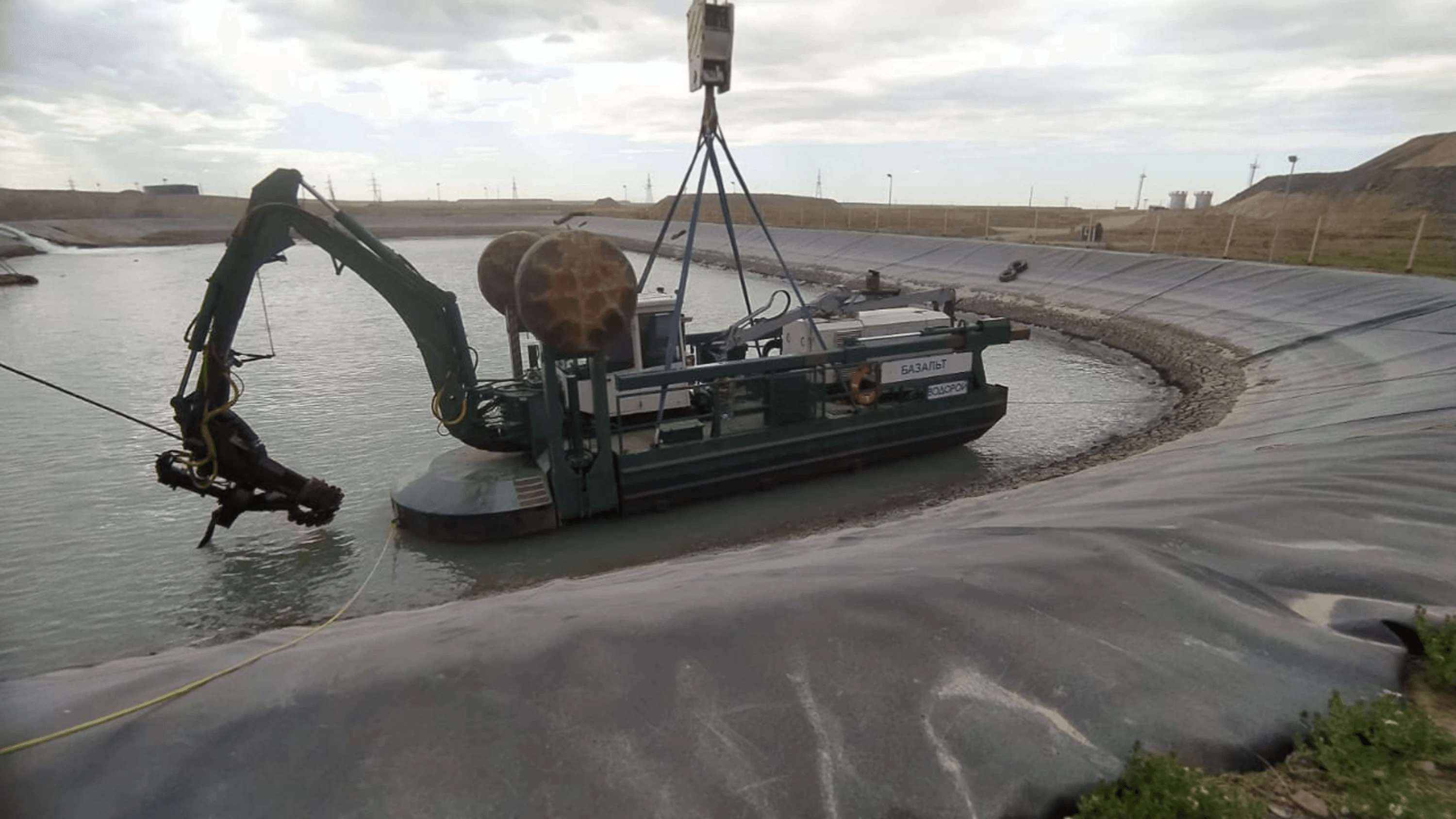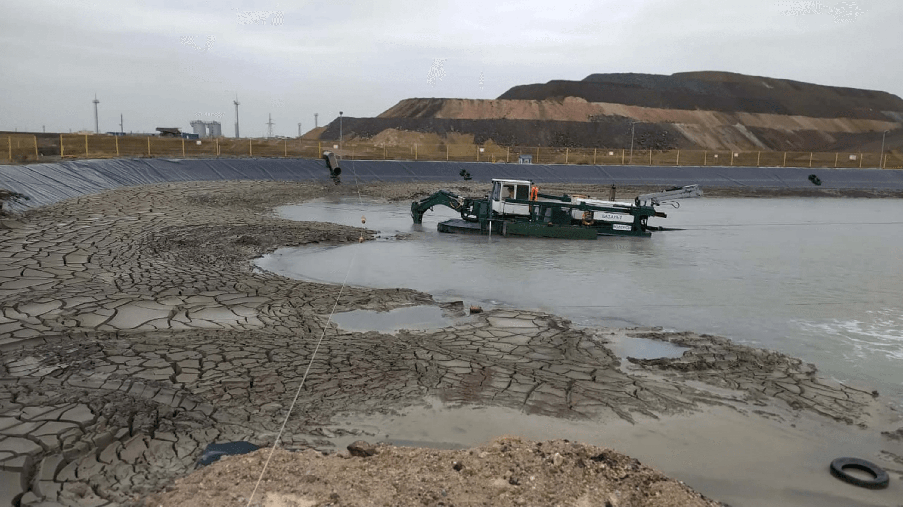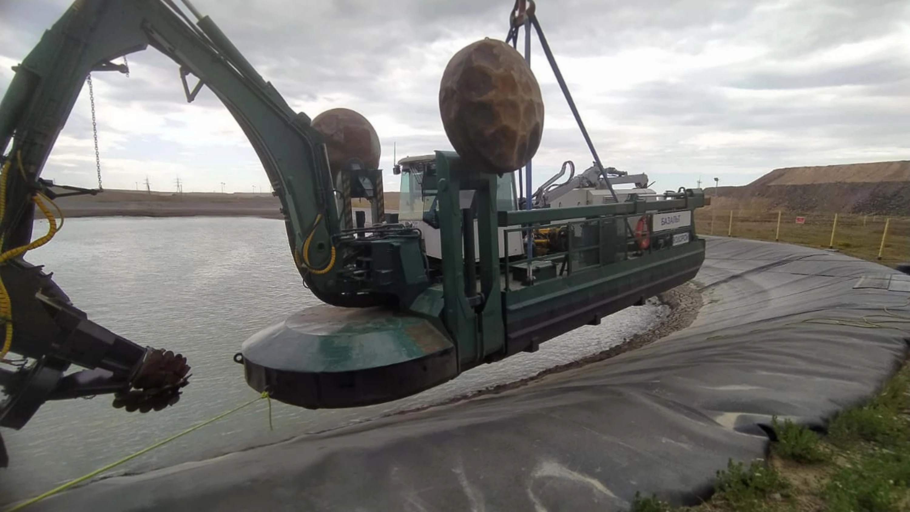 Очистка пруда технической воды от мелкодисперсных песков. Месторождение Боэшкаль в Павлодарской области Респ. Казахстан.