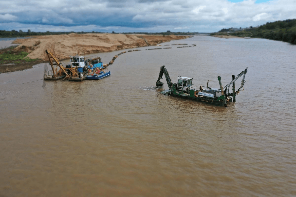 При выполнении руслорегулирующих работ были задействованы земснаряды: Ц480Д, Ахтарец 1600/45, Watermaster-Classic, экскаваторы, бульдозеры и другая наземная техника.
