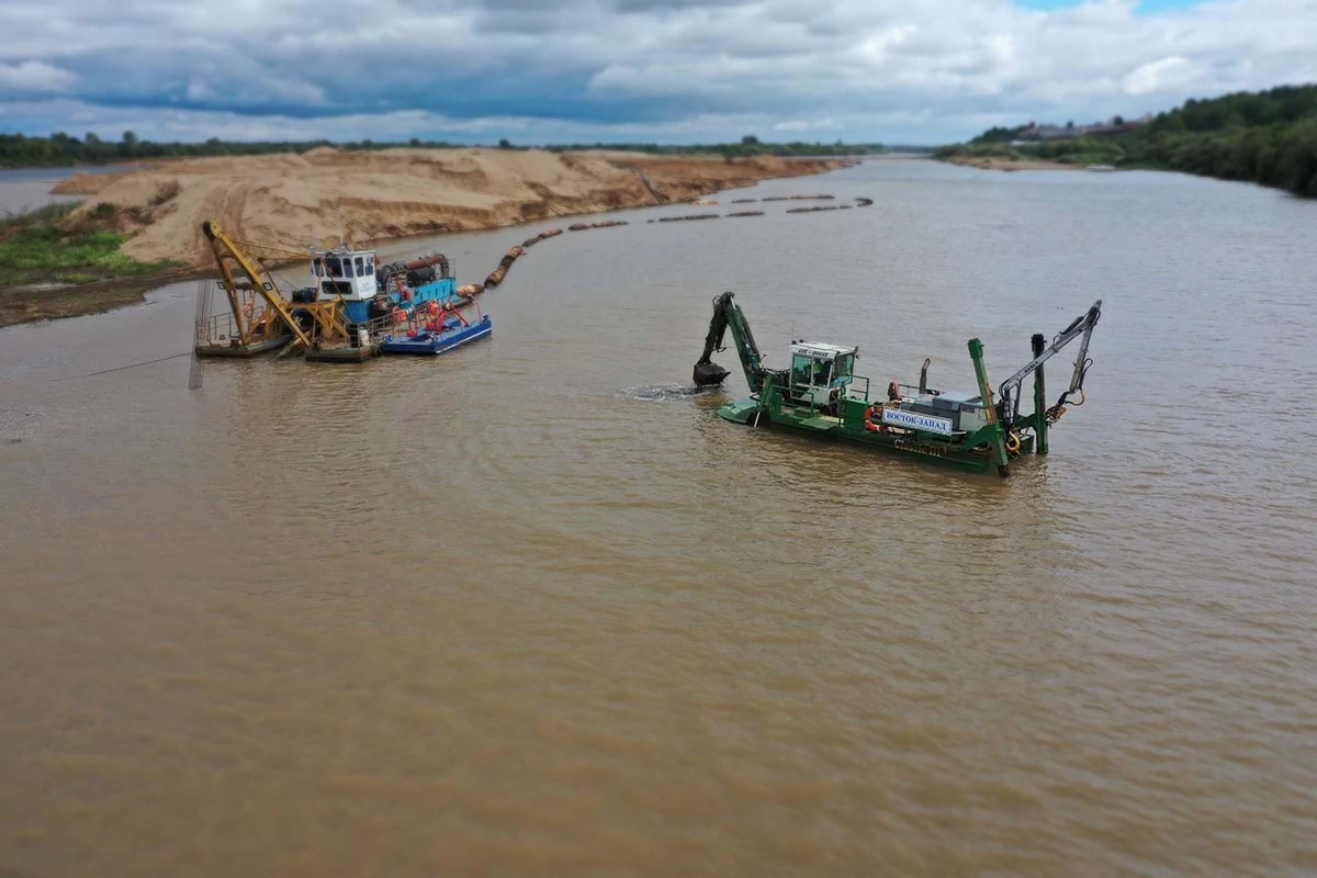 Объем руслорегулирующих работ на первом этапе производства, составил 635 тыс.м3 перемещенного донного грунта.