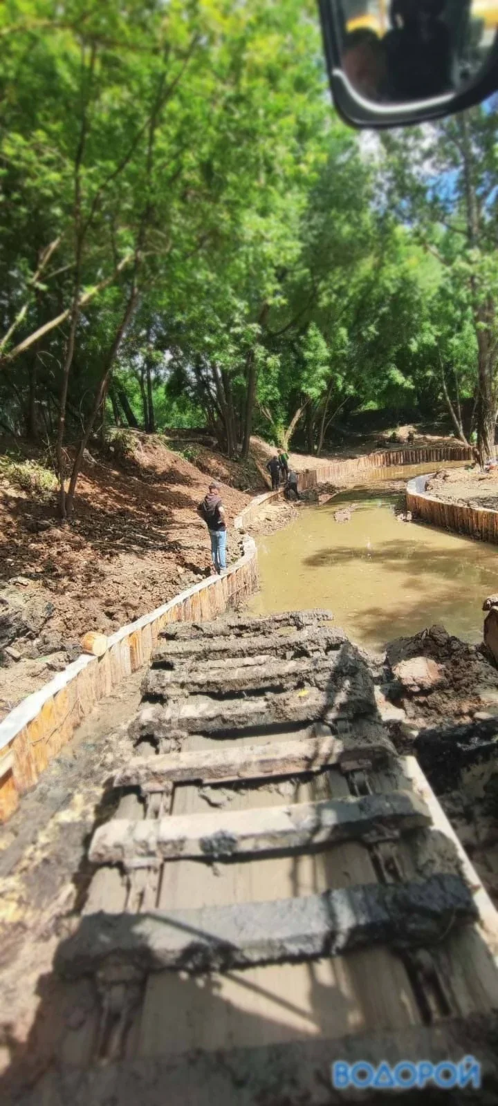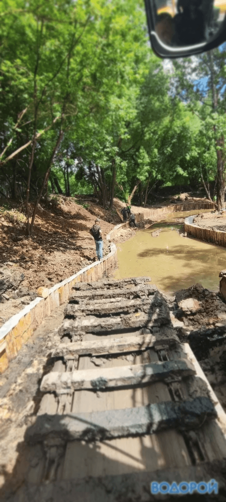 Формирование береговой линии, ландшафтные работы, берегоукрепление калиброванным брусом по адресу: г. Москва, ул. Дорожная 18.