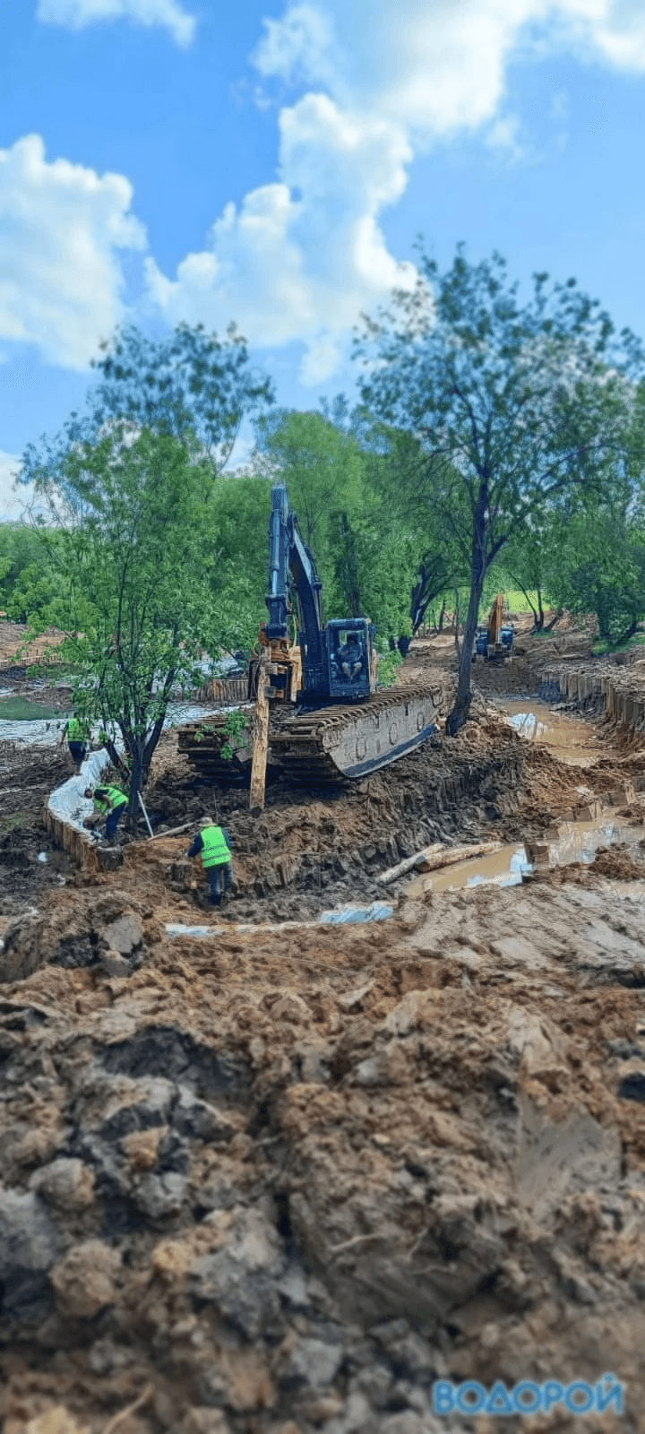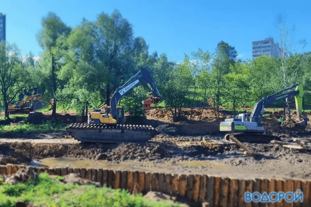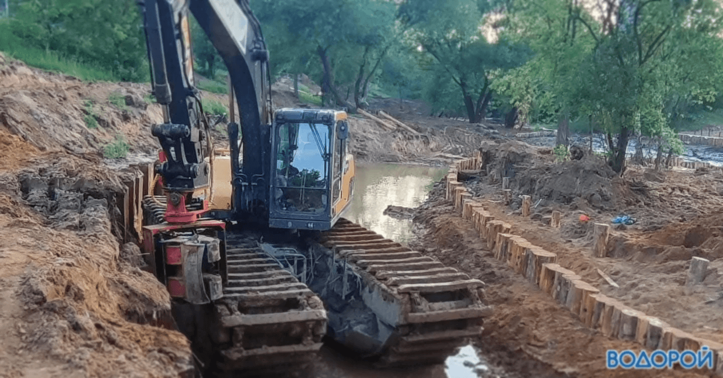 При выполнении работ применялись экскаваторы-амфибии Volvo и Doosan.