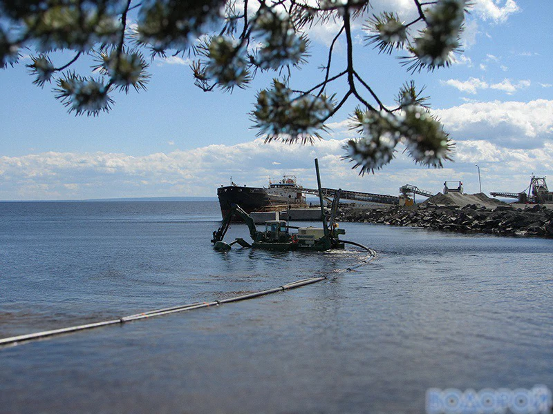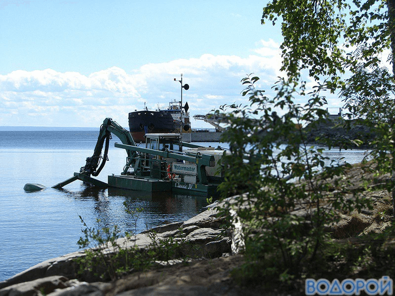 Дноуглубление на Онежском озере. Вблизи грузового причала деревни Щелейки Подпорожского района Ленинградской области.