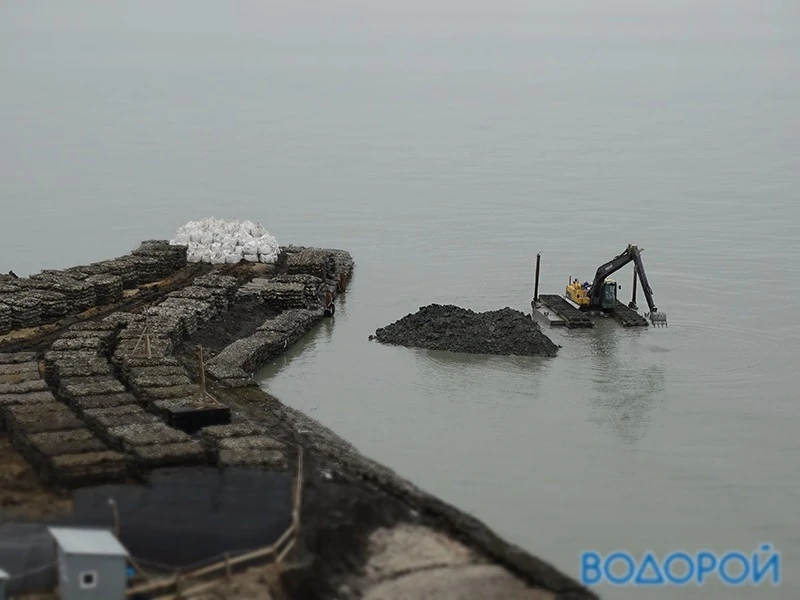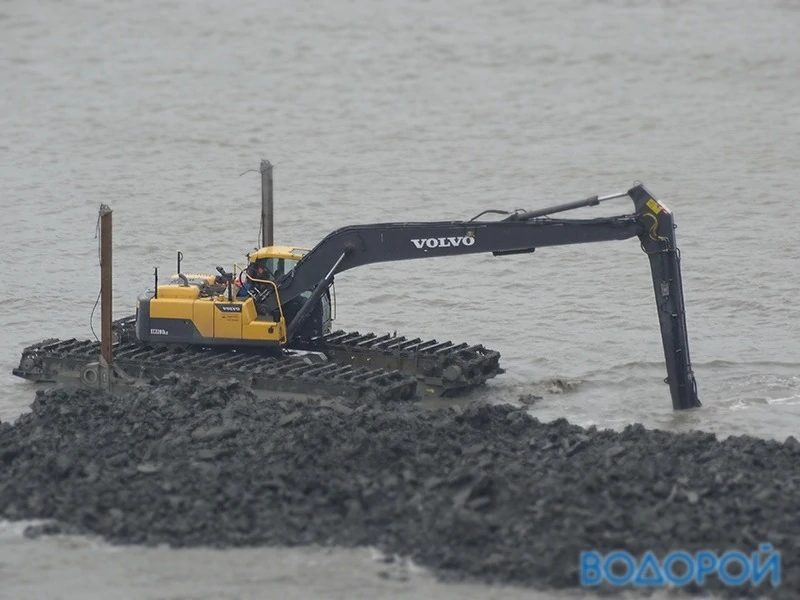 Работы выполнены экскаватором-амфибией Volvo EC220 Dlr EIK с использованием современной системы позиционирования TOPCON 3Dxi.