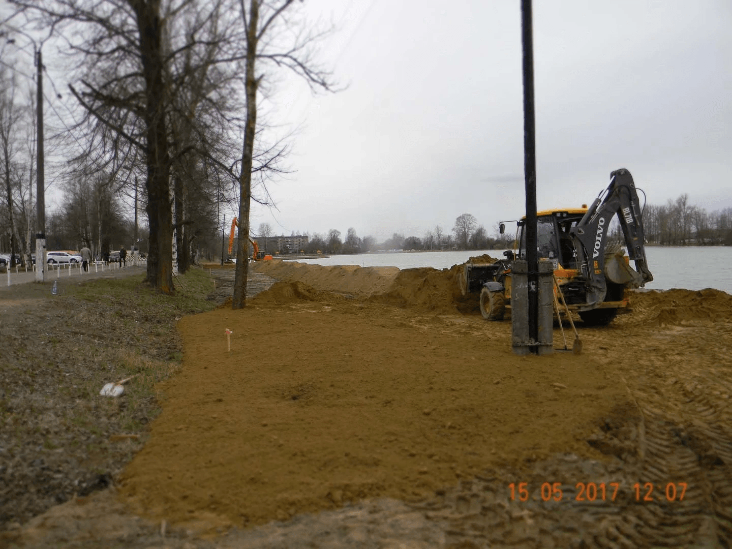 Работы выполнены в течение двух сезонов: в 2016 г. — подготовительные, основные (дно очистные) и завершающие работы без восстановления благоустройства. Восстановление благоустройства производилось весной 2017 г.