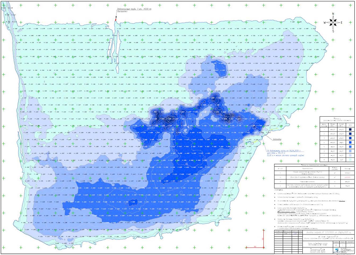 Промеры дна выполнены промерным гидрографическим комплексом АМК "СКАТ-50" (заводской номер 119. свидетельство о метрологической поверке №C-T/17-03-2025/417342160, действительно до 16.03.2027г.)