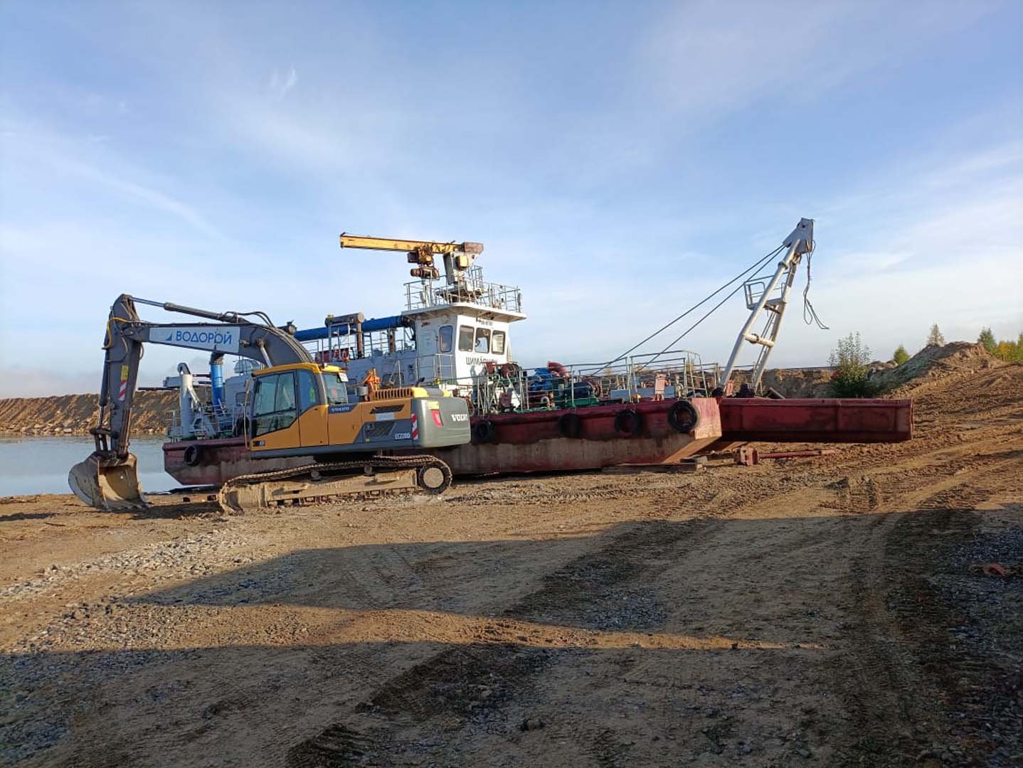 Работы выполнены с использованием экскаватора-амфибии.
