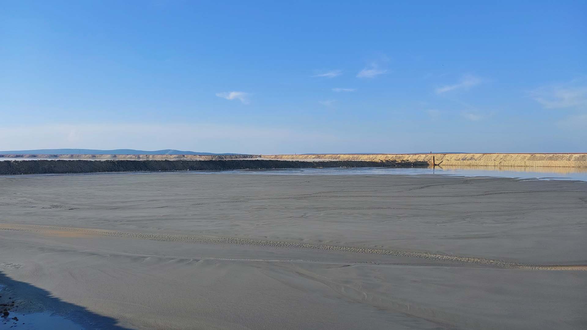 Этап 2. Дноуглубление дна канала, путем перемещения песков в объеме 233 тыс. м3 в карту и пляжную зону в 100 м от Северной дамбы прудка отстойника АО "Ковдорский ГОК"