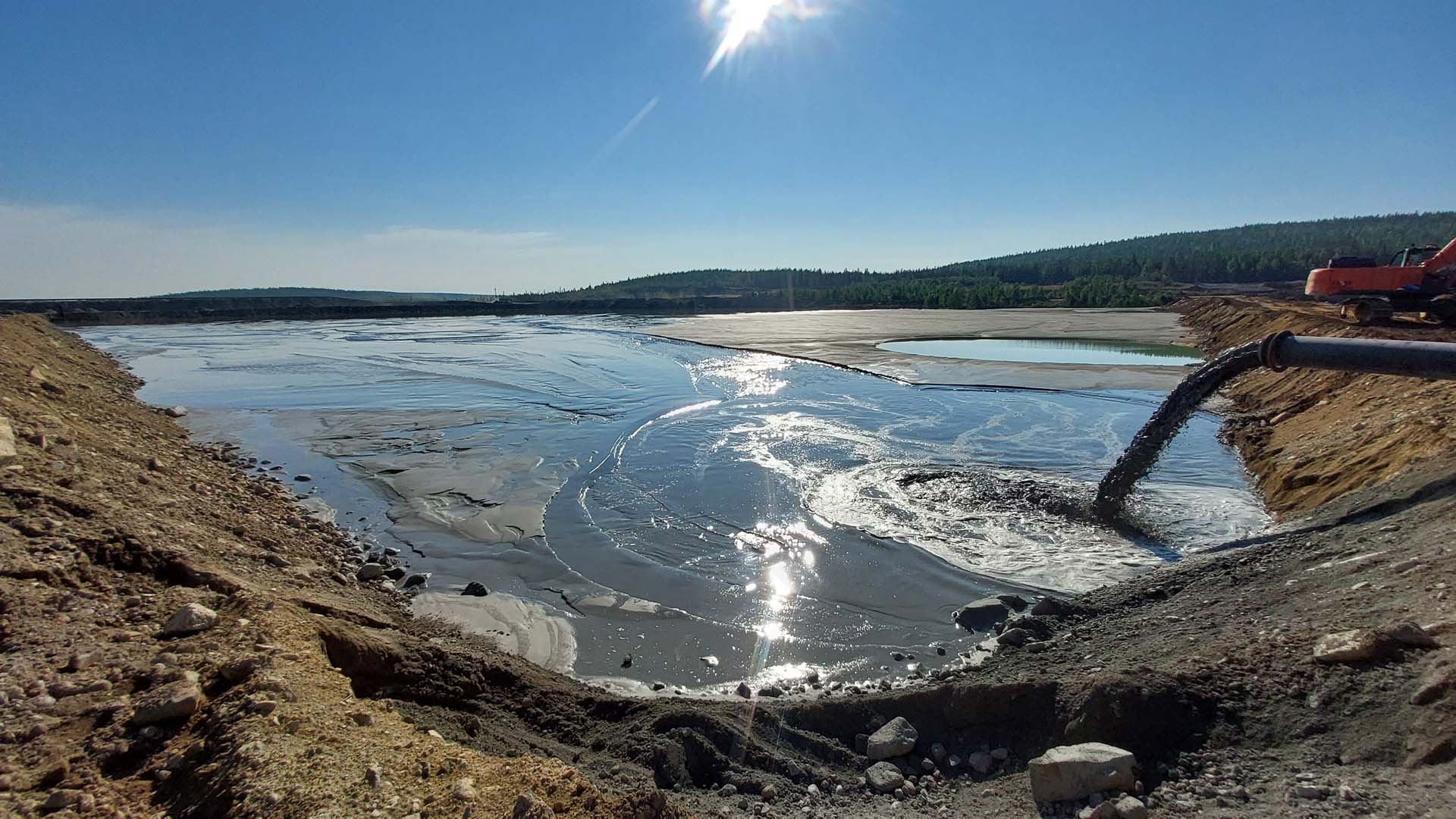 Было успешно произведено углубление дна вокруг водоприемного колодца ВК-3, связанное с перемещением обводненных хвостов.