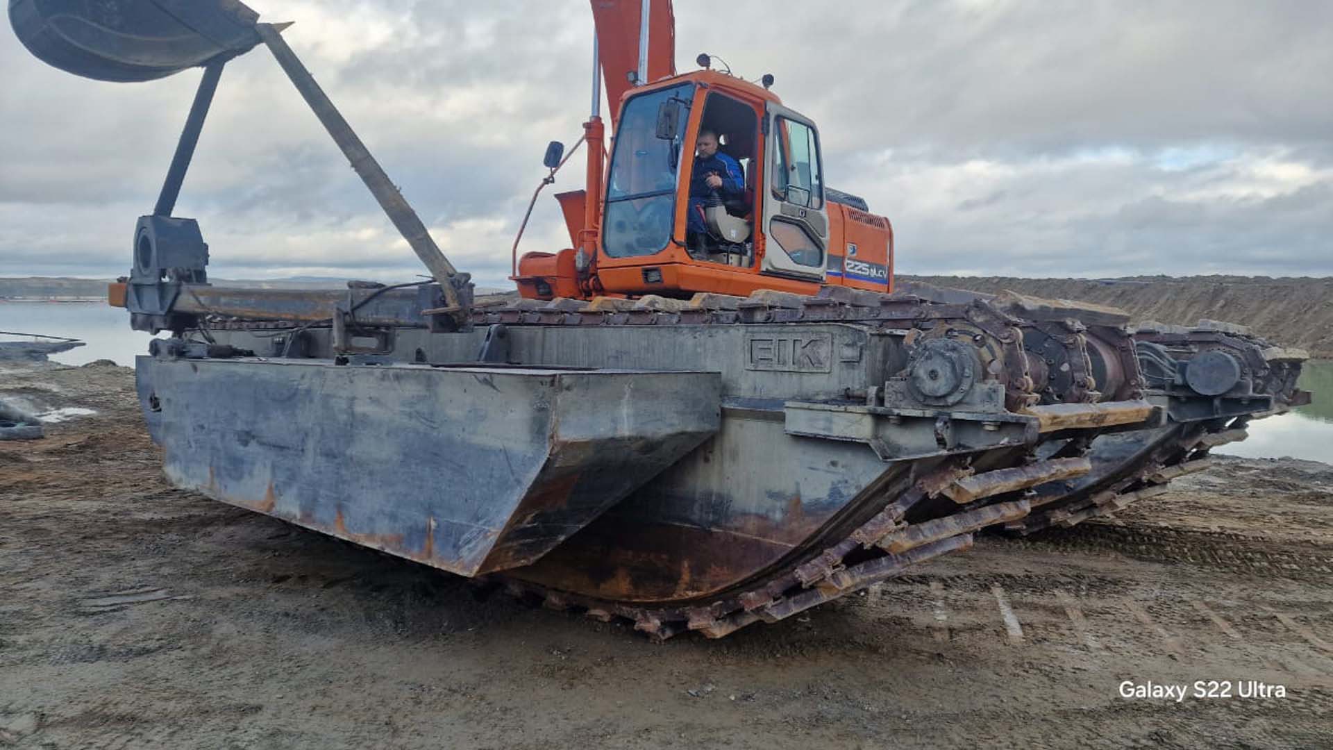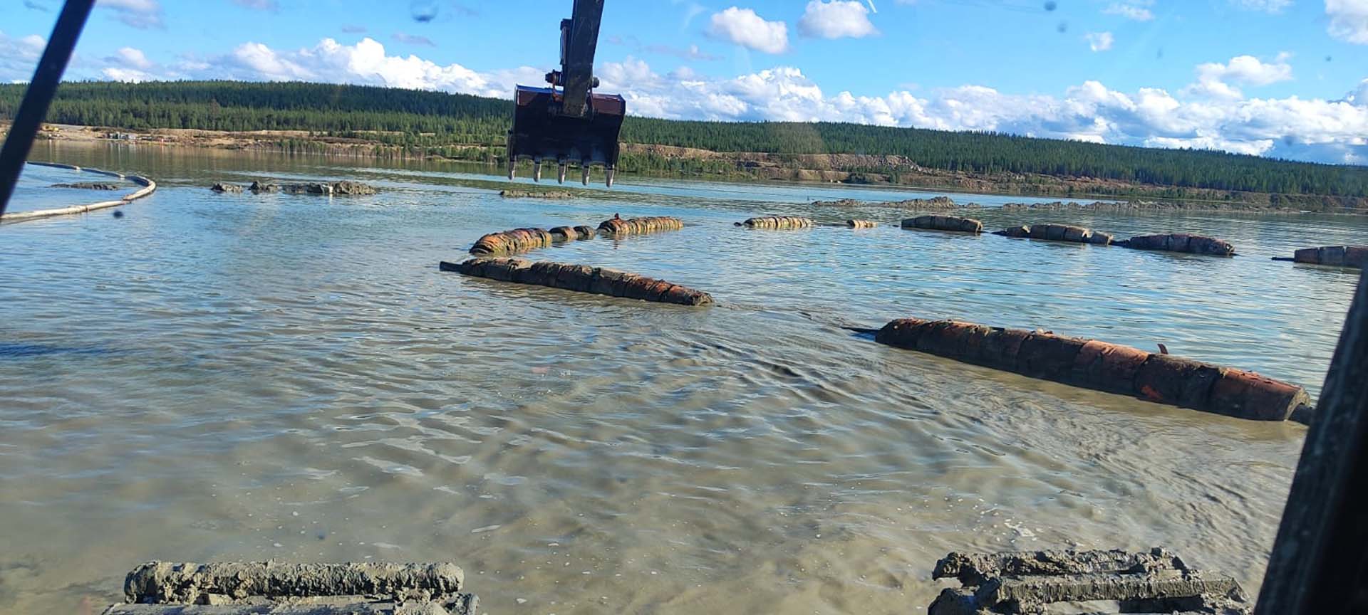 Работы выполнены с использованием экскаватора-амфибии.