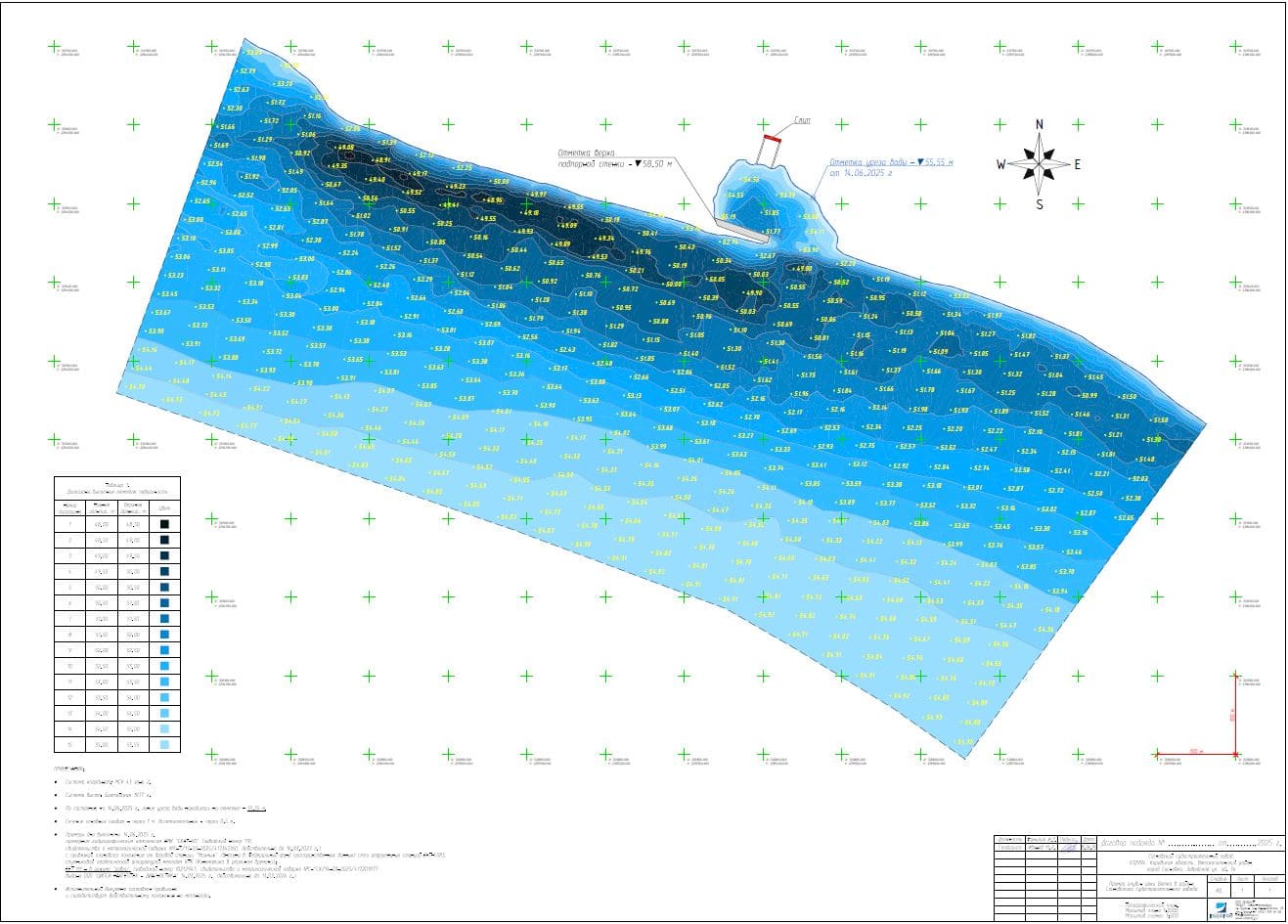 Промеры дна выполнены 14.06.2025 г. промерным гидрографическим комплексом АМК "СКАТ-50" (заводской номер 119, свидетельство о метрологической поверке С-Т/17-03-2025/417342160, действительно до 16.03.2027 г.) с привязкой планового положения от базовой станции "Малмыж" (внесена в Федеральный фонд пространственных данных) сети референцных станций EFT-CORS, спутниковой геодезической аппаратурой методом RTK (Кинематика в реальном времени): (Кинематика в реальном времени): EFT M1 - в режиме "ровер" (заводской номер 10212947, свидетельство о метрологической поверке С-ГСХ/14-03-2025/417201977 (заводской номер 10212947, свидетельство о метрологической поверке С-ГСХ/14-03-2025/417201977 выдано ООО "ЦИПСИ НАВГЕОТЕХ - ДИАГНОСТИКА" 14.03.2025 г., действительно до 13.03.2026 г.)