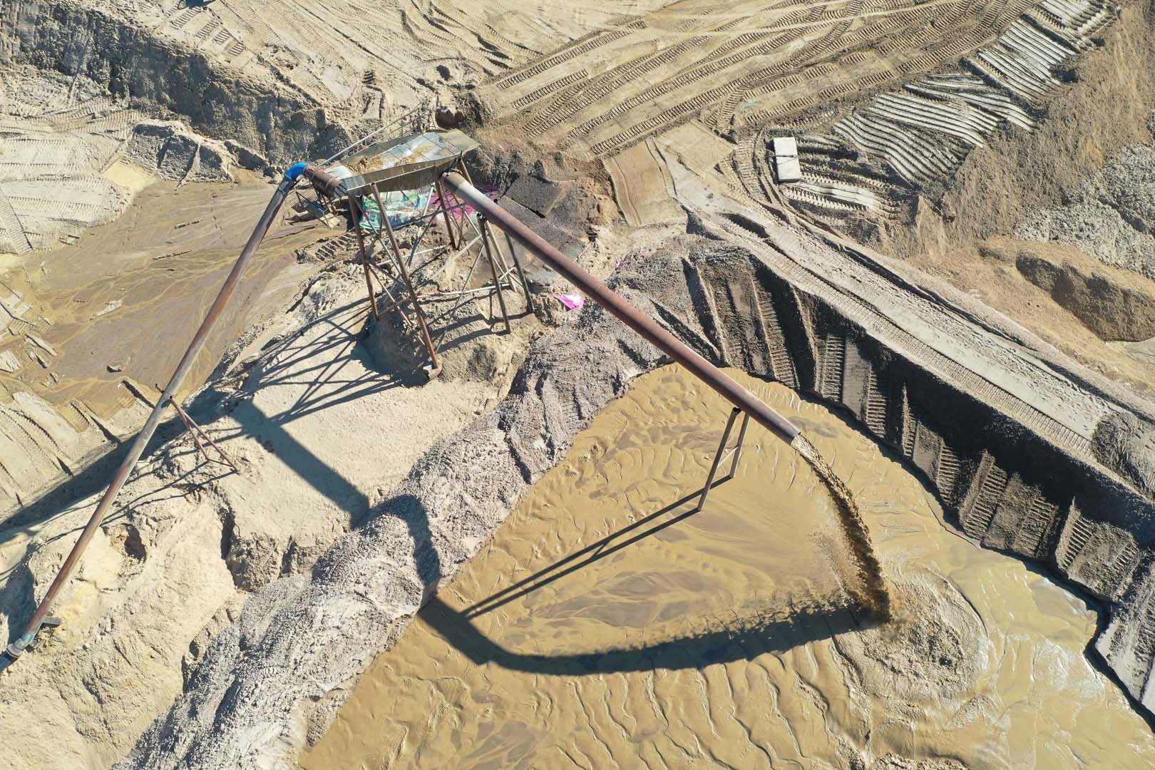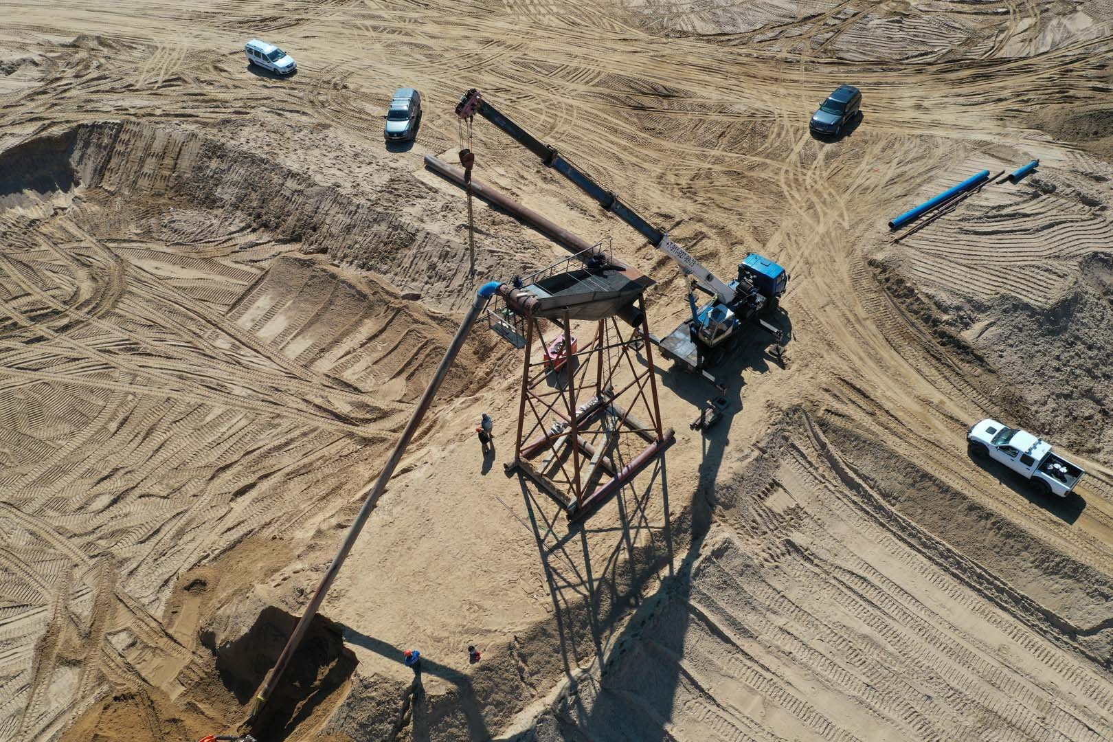 Для добычи и транспортировки песчано-водной смеси использовался землесосный снаряд проекта Ц480Д. Добытая пульпа подавалась на береговую технологическую линию, где осуществлялась ее обработка на станции отсеивания для выделения целевой песчаной фракции и удаления примесей.