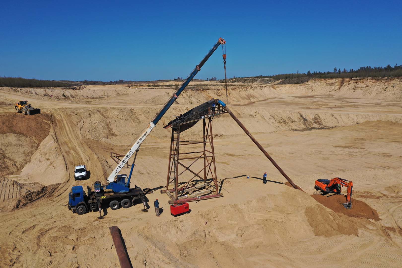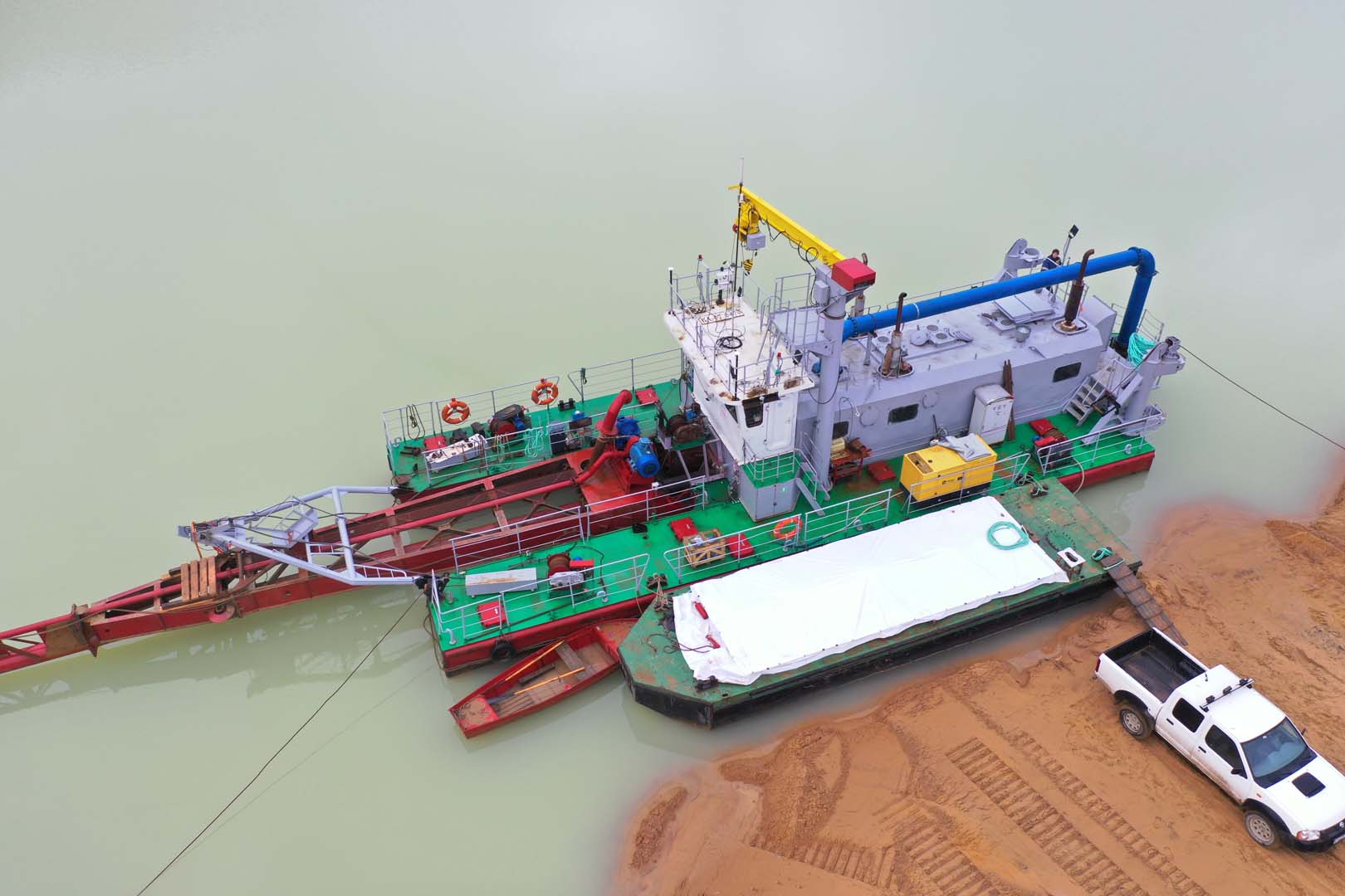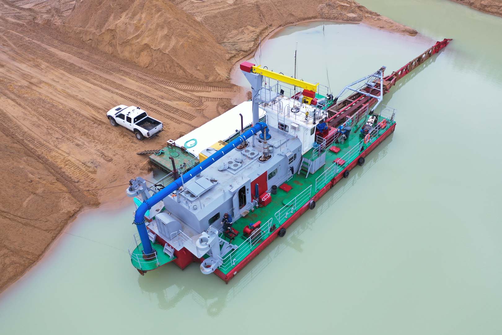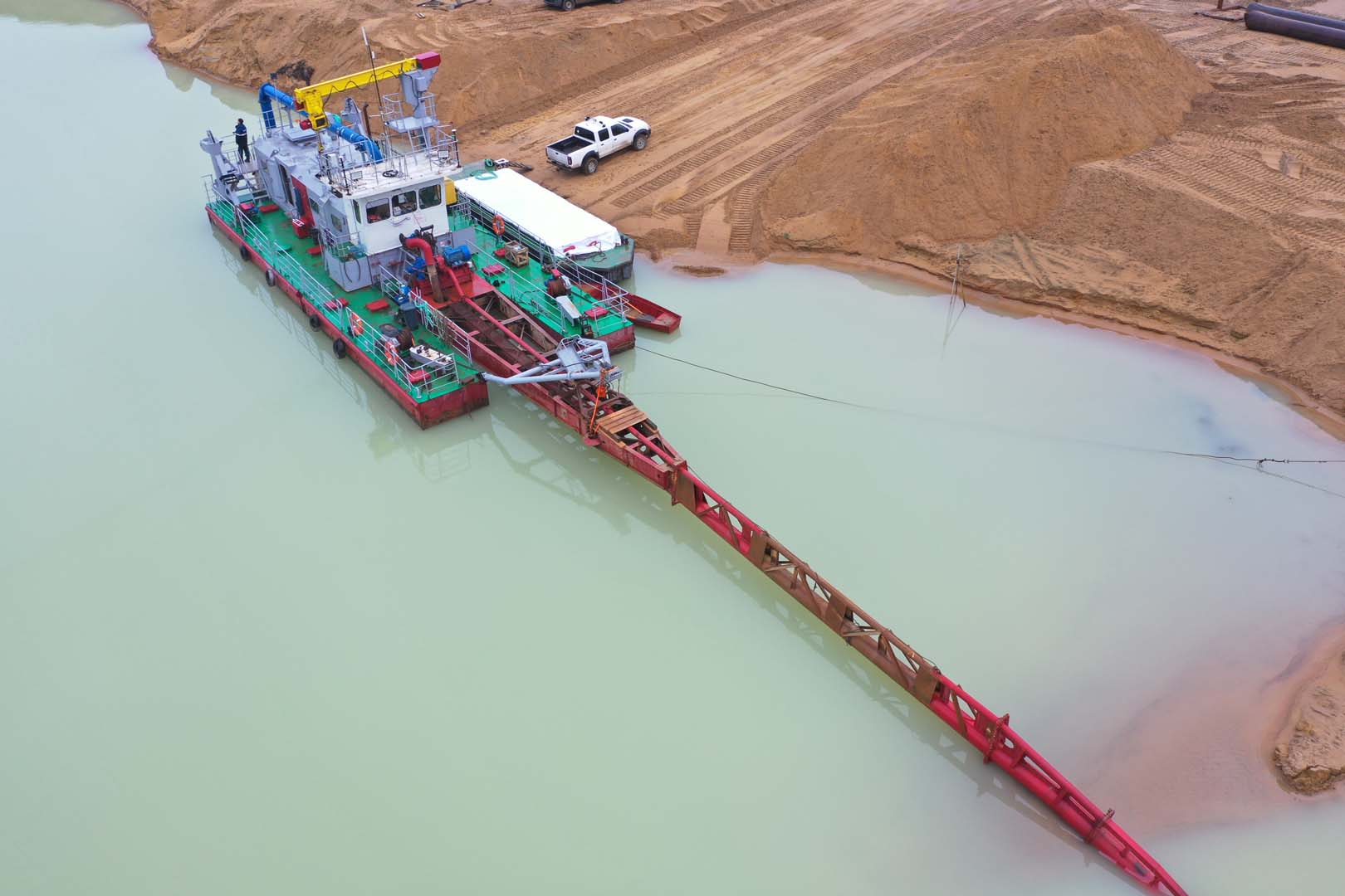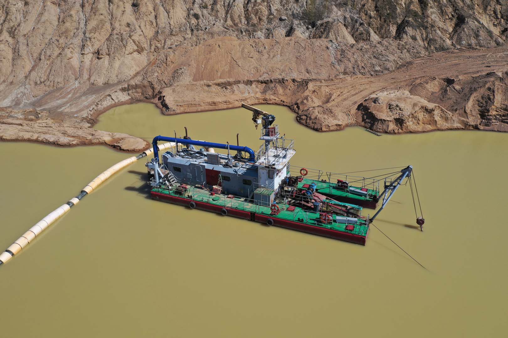 Для добычи и транспортировки песчано-водной смеси использовался землесосный снаряд проекта Ц480Д. Добытая пульпа подавалась на береговую технологическую линию, где осуществлялась ее обработка на станции отсеивания для выделения целевой песчаной фракции и удаления примесей.